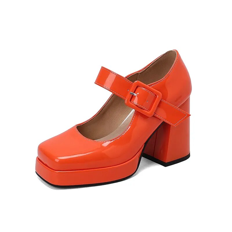 - Made from quality faux PU Patent leather and featuring chunky square heel, anti-skid platform soles, round toes, buckle clasp, seam detailing and soft cushioning. These Mary Jane, Lolita style shoes will be sure to please.
