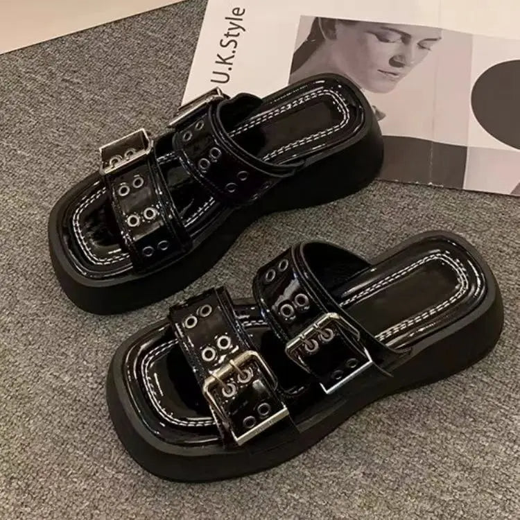 • Our gothic punk slides are built for comfort and style. Made from high quality PU Leather, that is tough and durable but provides a bit of give. These shoes are designed to take a few knocks and be around for a while. Lightweight and super comfortable they are perfect in hot weather as they let your feet breathe while adding a touch of flare to any outfit.