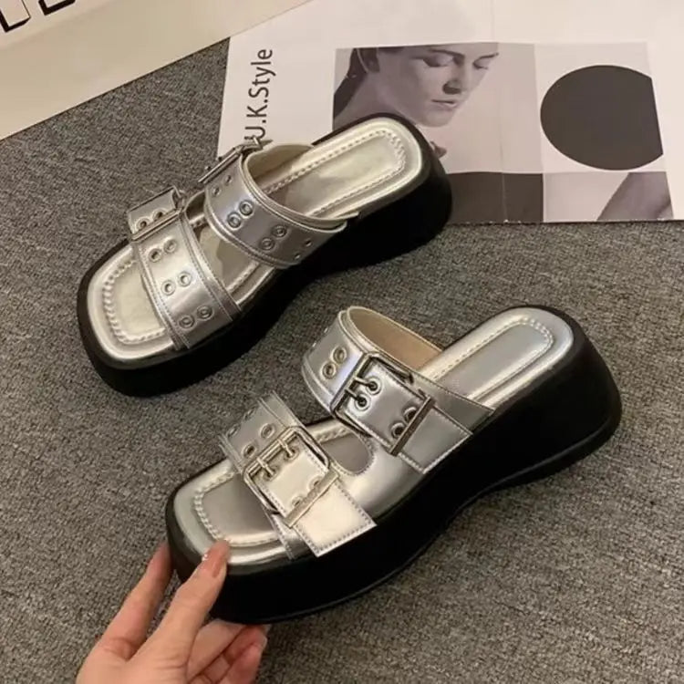 Funki Findz | Shoes | Women's Gothic Punk Low Wedge Slides