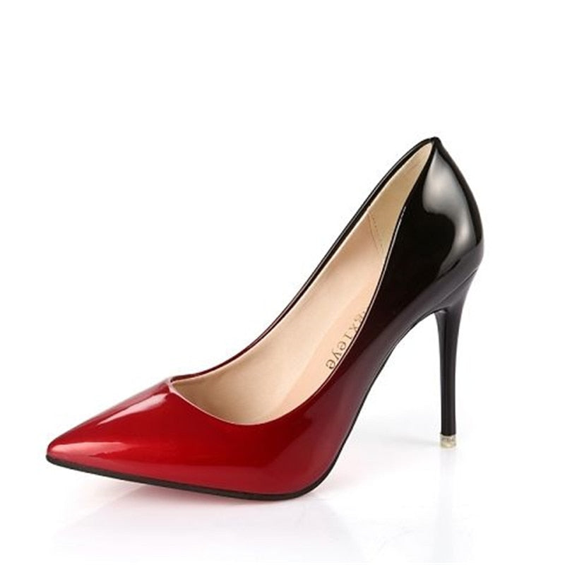 - These beautiful PU leather stilettos ooze charm and sophistication with their classic pointed toe, easy slip on and off design, gradient tow toned coloring, soft cushioning for comfort, seam detailing and finished with a thin high heel and ridged rubber sole making these adorable shoes an easy choice for any occasion.