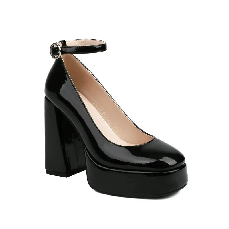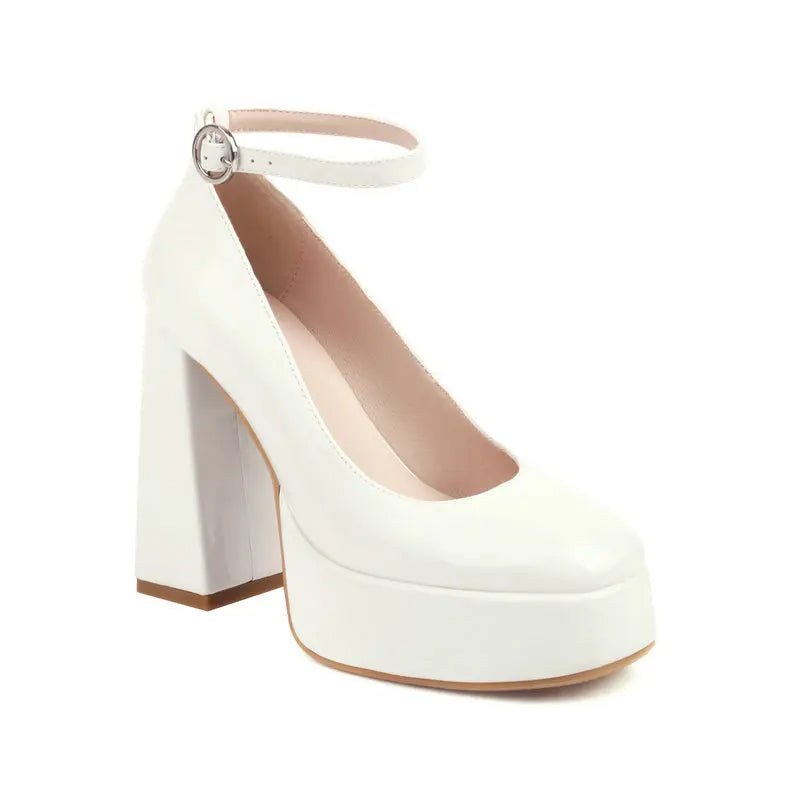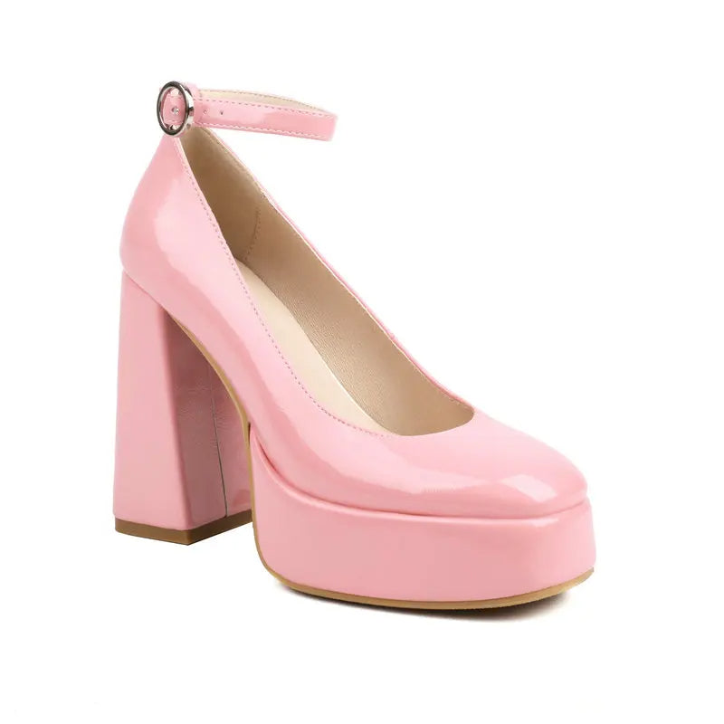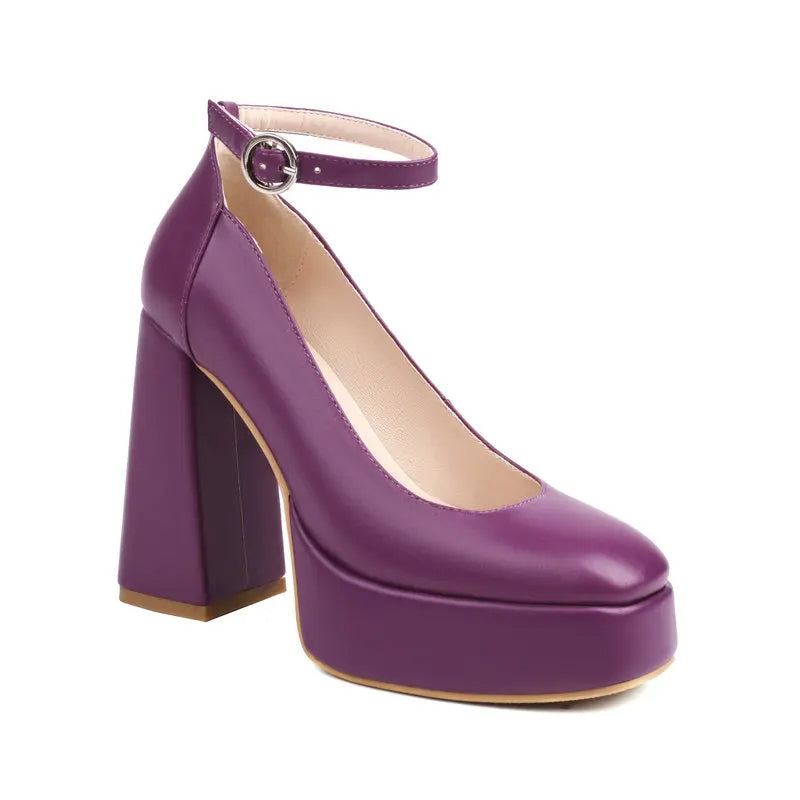 - Made from high quality faux PU Leather in elegant pastel and bold colors, and featuring square toe, chunky block heel, anti-skid platform soles, thin ankle strap, buckle strap closure, seam detailing and soft inner cushioning for comfort and support. These striking formal shoes are sure to please.
