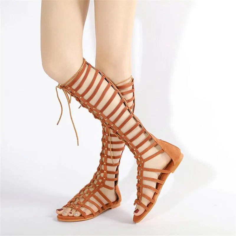 - Suitable for everyday or special occasions our versatile knee high open sandals can be dressed up or down to suit the occasion.