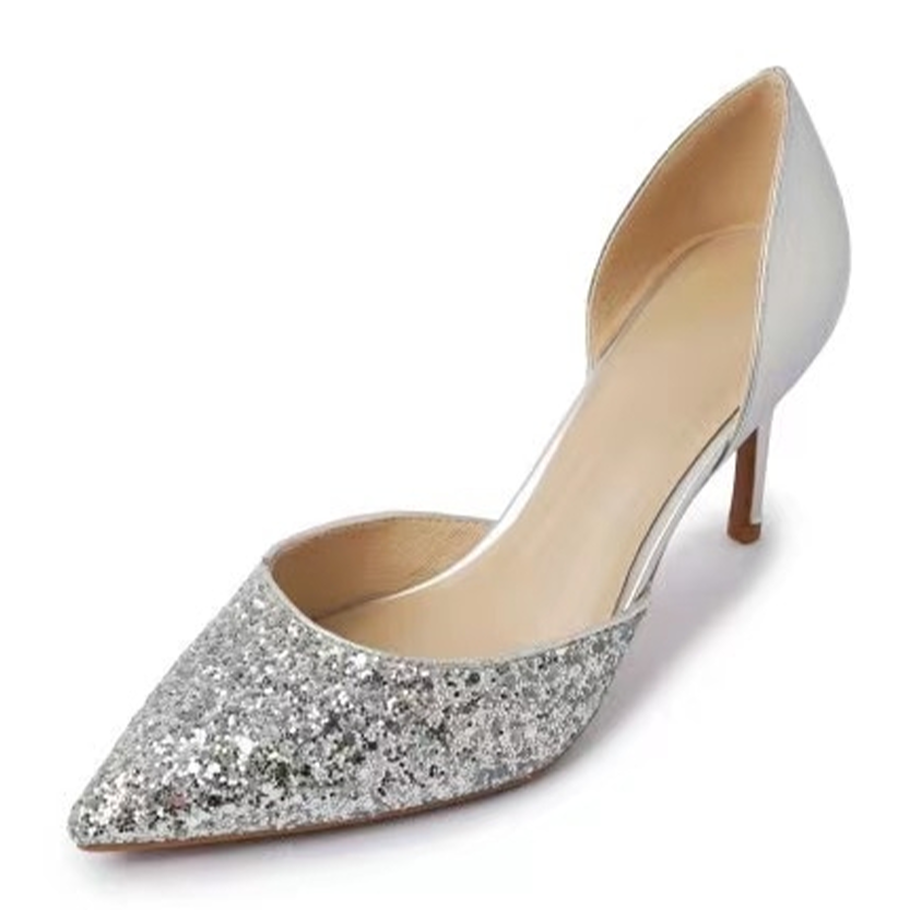 - Featuring bold, glittery, bling design with easy slip-on and off closure, classic pointed toe, soft inner cushioning for comfort, non slip, ridged rubber soles, and finely finished with stylish thin metallic heels, these glitzy, glamorous shoes are an easy choice for any formal occasion.