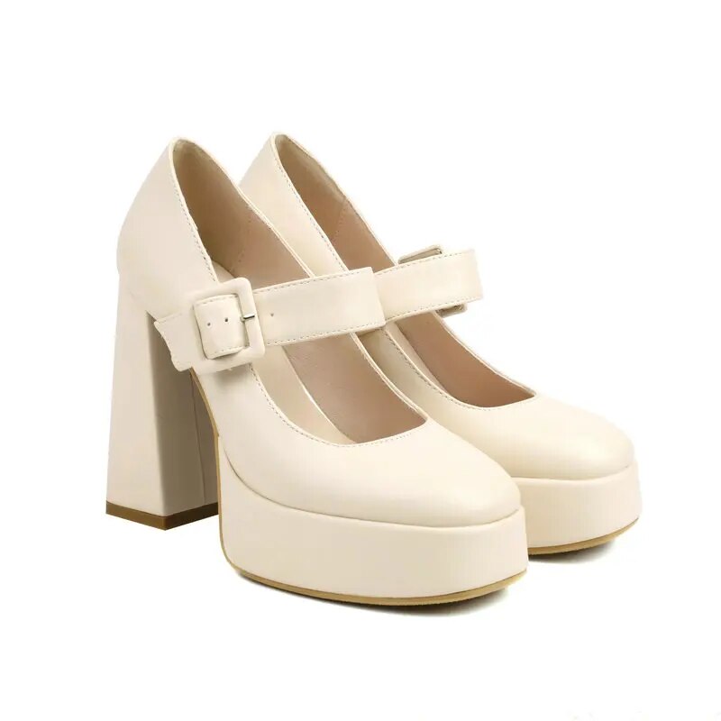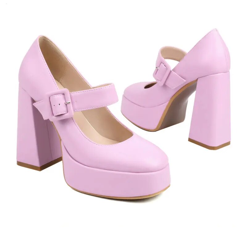 - Made from quality faux PU leather and featuring chunky square heel, anti-skid platform soles, round toes, buckle clasp, seam detailing and soft cushioning. These Mary Jane, Lolita style shoes will be sure to please.