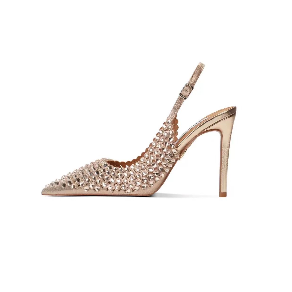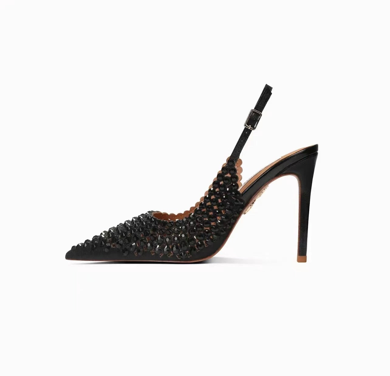 - Featuring bold, glittery, bling design with easy slip-on thin buckle strap closure, classic pointed toe, soft inner cushioning for comfort, non slip, ridged rubber soles, and finely finished with stylish thin metallic heels, these glitzy, glamorous shoes are an easy choice for any formal occasion.