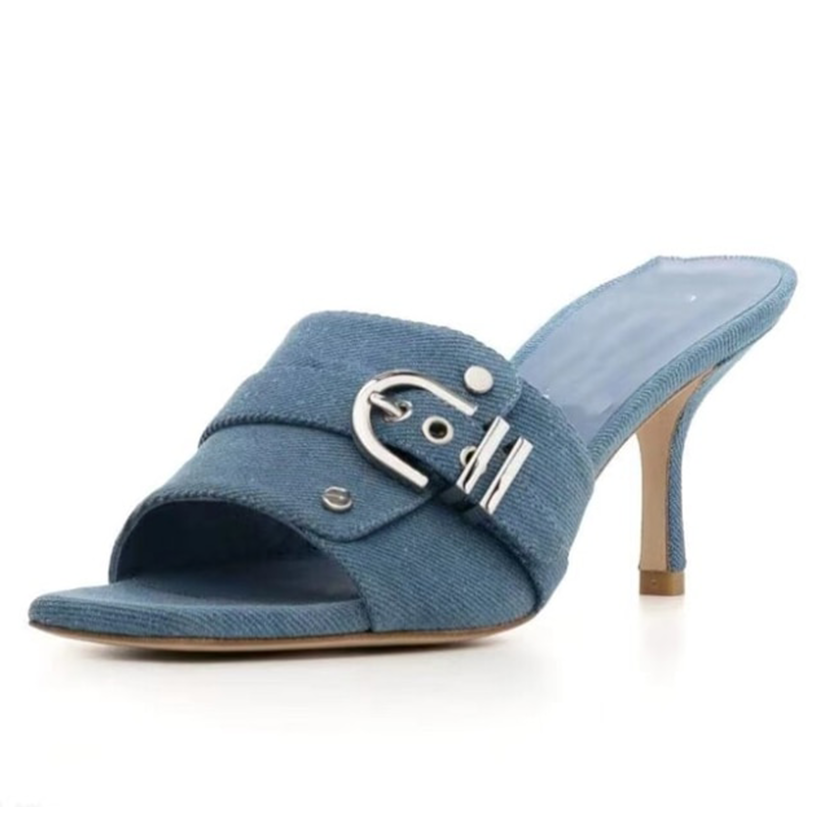 - Featuring open square toe, button up front, denim design, cushioned inner, seam detailing, stiletto style high heel, and anti-slip rubber soles, these shoes will make you feel like you're walking on air. Super comfortable and easy to walk in, you will want to wear them all day, every day.