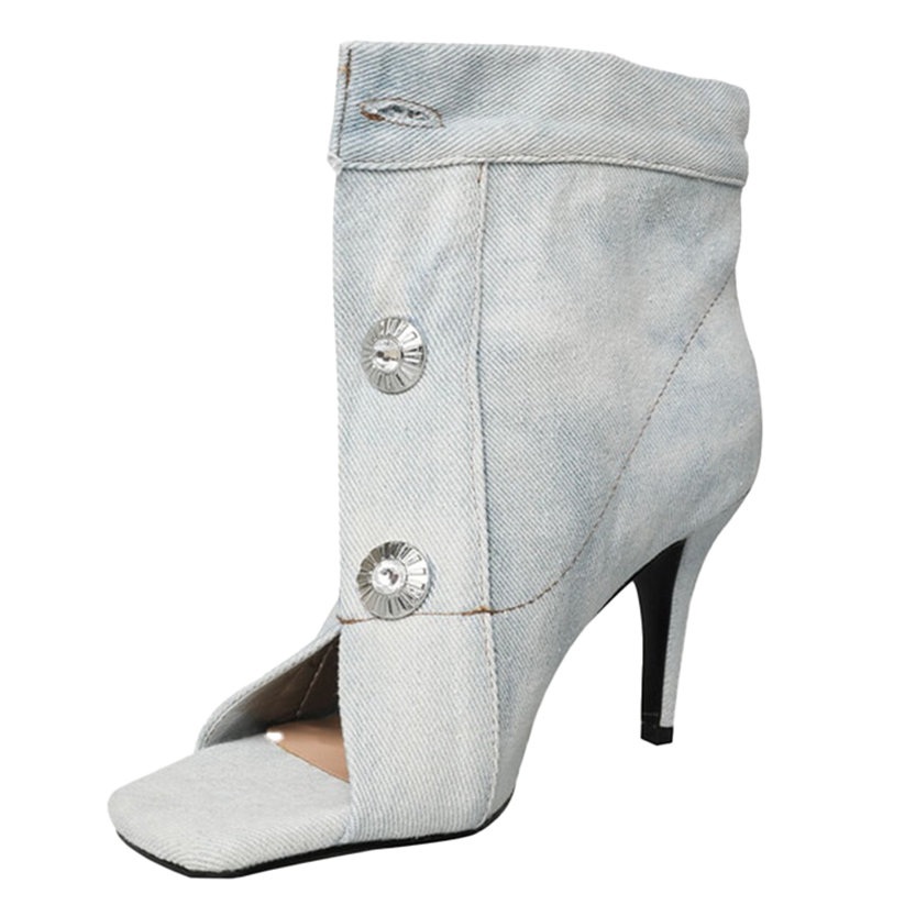 Vintage Denim Shoes, Denim Open Toe Shoes, Denim Pocket Design Shoes, Denim Button Up Shoes, Novelty Shoes, Novelty Denim Shoes, Denim Button Up Shoes, Women's Summer Shoes, Summer Sandals, Summer Boots.