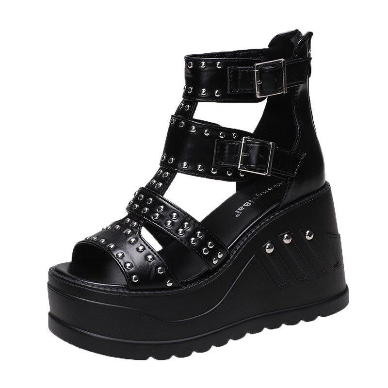 Gothic Punk Platform Shoes, High Chunky Platform Shoes, Zipper Shoes. PU Leather Shoes. Wedges, Creepers, Punk Shoes, Gothic Shoes. Black Women's Sandals. Gothic Style Open Toe Casual Leisure Black Brand Designer Metal Summer Shoes