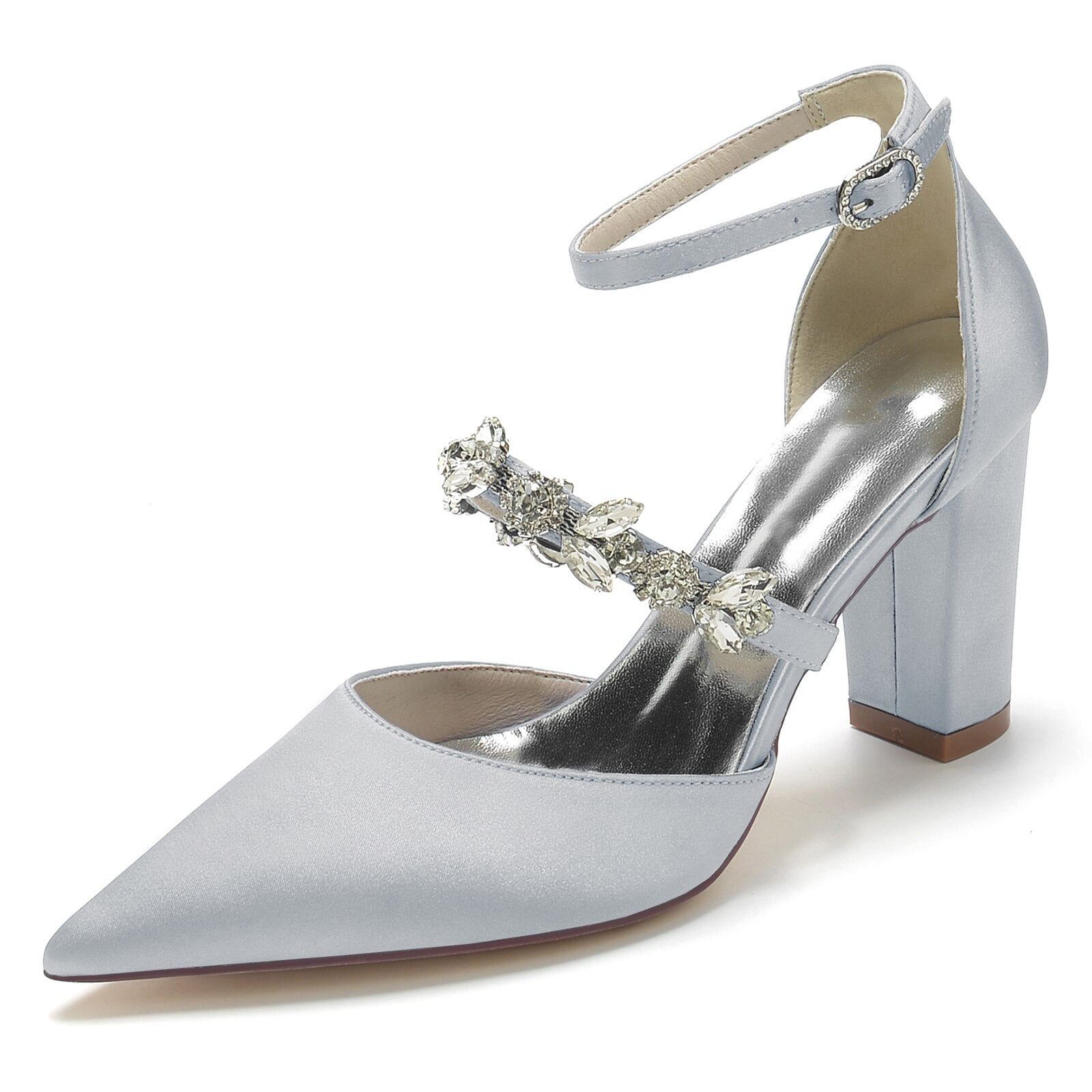 - Featuring striking pointed toe design with rhinestone thin elegant ankle straps, buckle closure, soft inner cushioning for comfort, non slip, ridged rubber soles, and finely finished with stylish mid block heels, these dreamy summer sandals are an easy choice for any occasion.