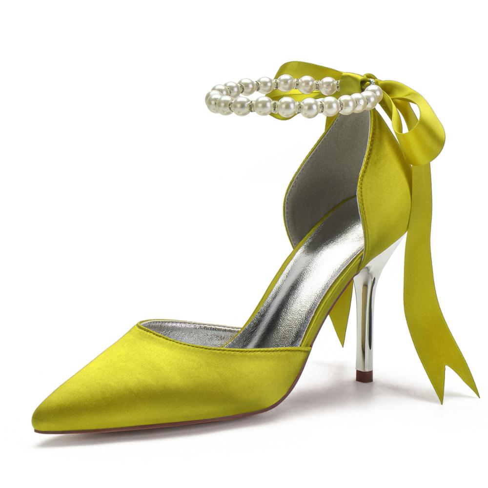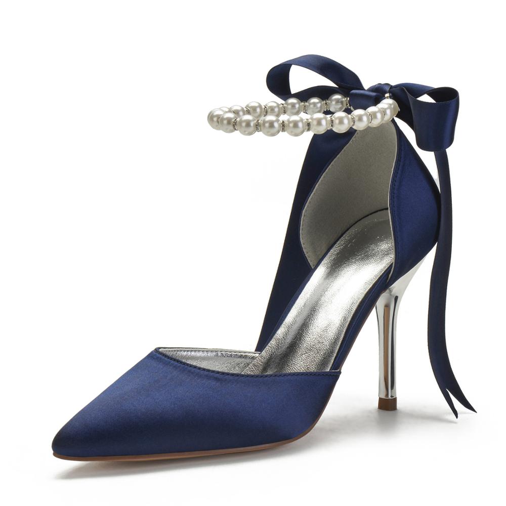 - Featuring elegant pearl ankle strap, rear satin tie up closure, classic pointed toe, soft inner cushioning for comfort, non slip, rigid rubber soles, and finely finished with stylish high 3.54"/9.0cm metallic stiletto heels, these stunning dress shoes are an easy choice for any formal occasion.