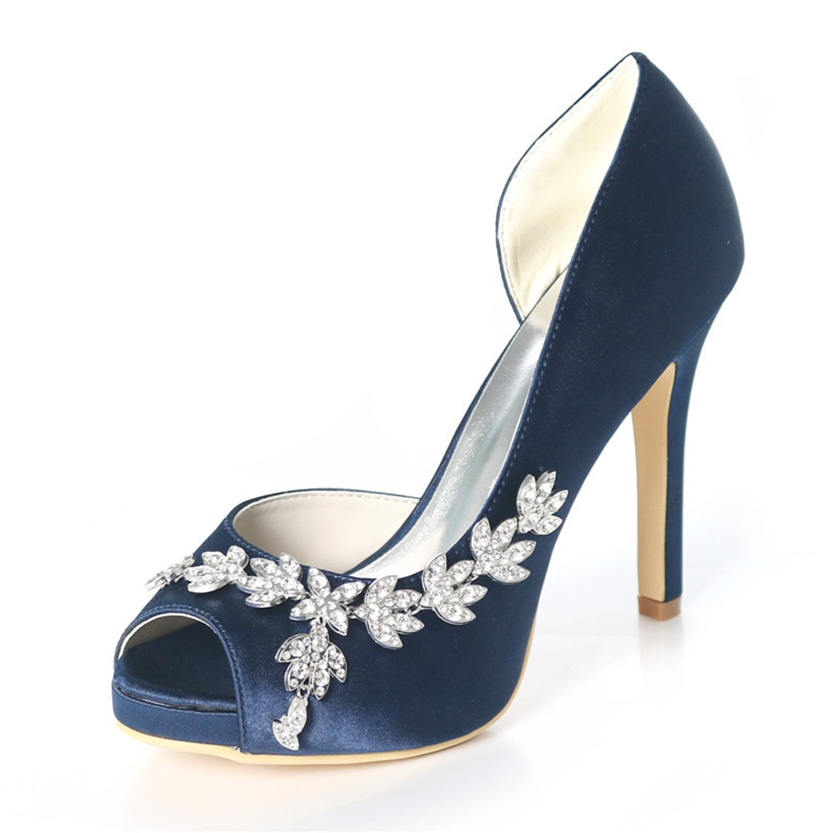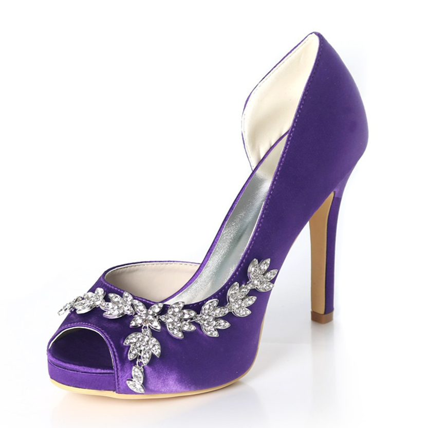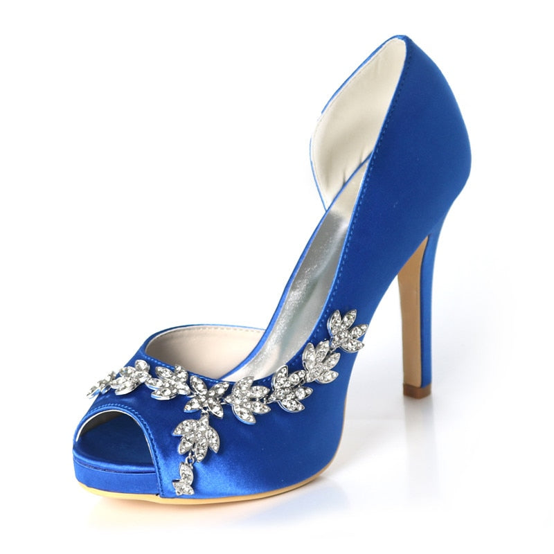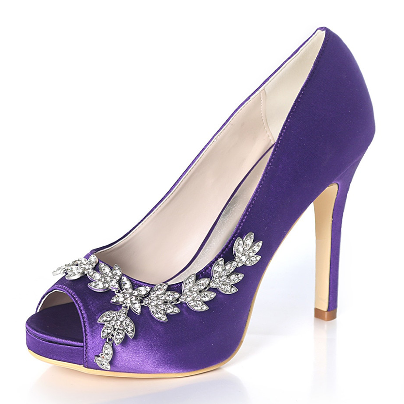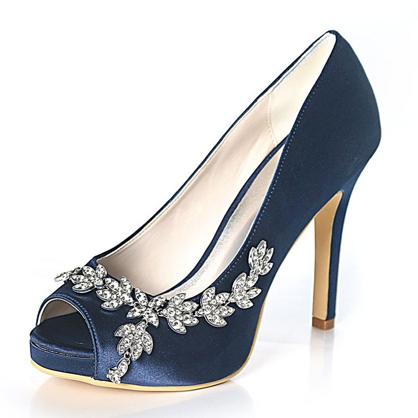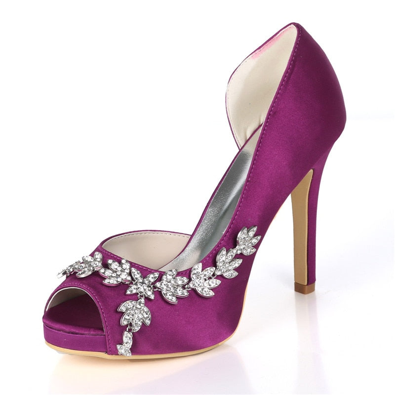 - Featuring sweet rhinestone beading, slip on closure, round peep toe, soft inner cushioning for comfort, seam detailing, non slip, ridged rubber soles, and finely finished with stylish 4.33"/11cm high stiletto heels, these glamorous bridal shoes are an easy choice for any special or formal occasion.