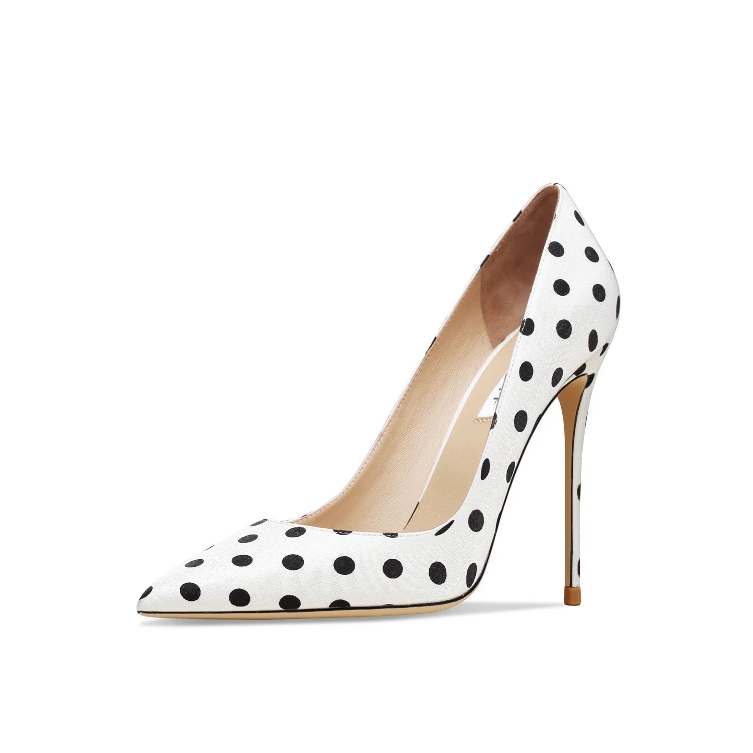 - Featuring, sweet polka dot design on silk and genuine leather with high instep, thin stiletto high heel and anti-slip ridged rubber sole these cute slip on pumps are an easy choice for any occasion.