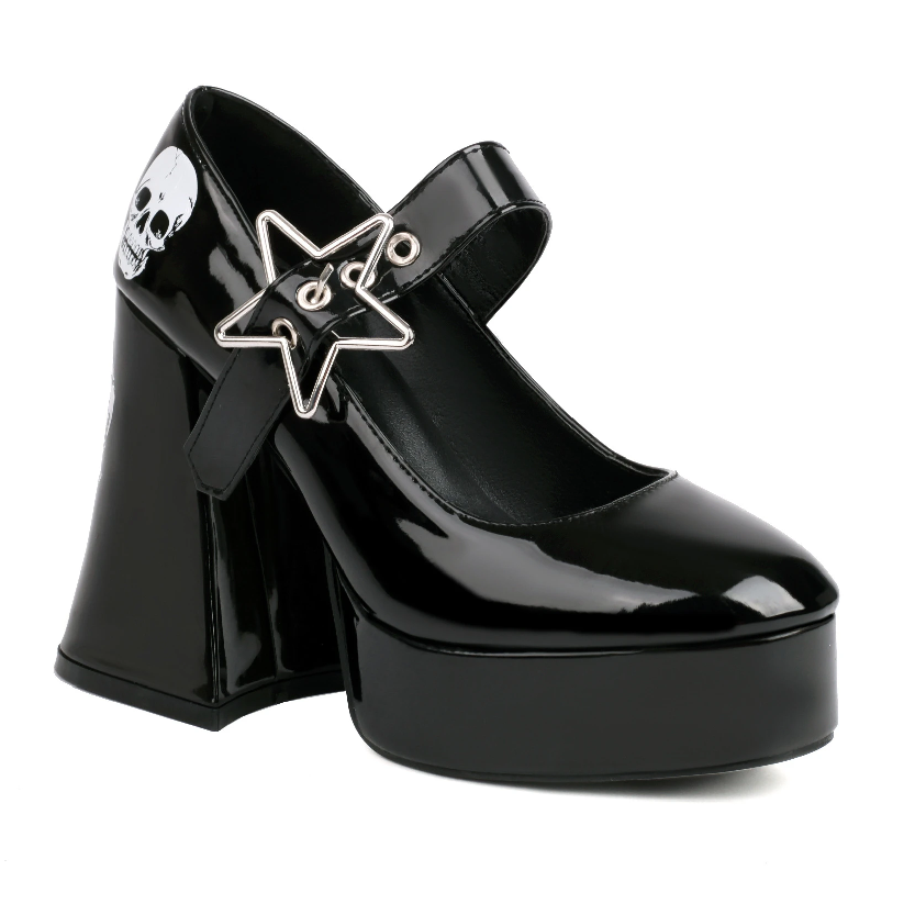 - Made from quality faux PU Patent leather and featuring chunky square heel, anti-skid platform soles, round toes, buckle clasp, seam detailing and soft cushioning. These Mary Jane, Lolita style shoes will be sure to please.