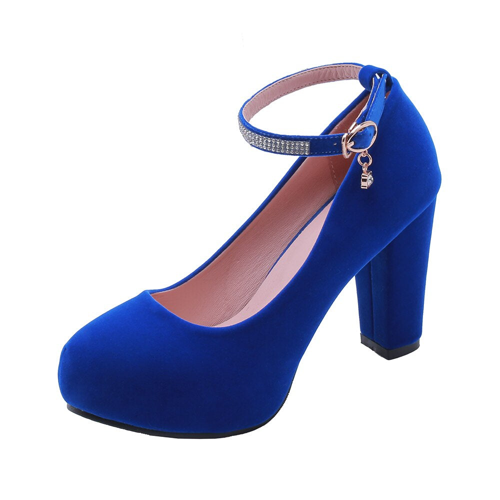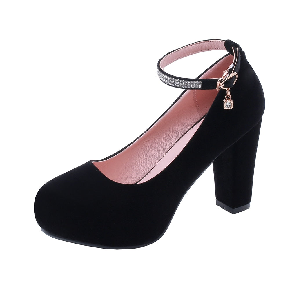 - Made from quality faux PU suede leather and featuring easy slip on and off design, buckle strap closure, chunky square block heel, cushioned insole for comfort, anti-skid rubber soles, round toes, and seam detailing. These Mary Jane, Lolita style heels will be sure to please.