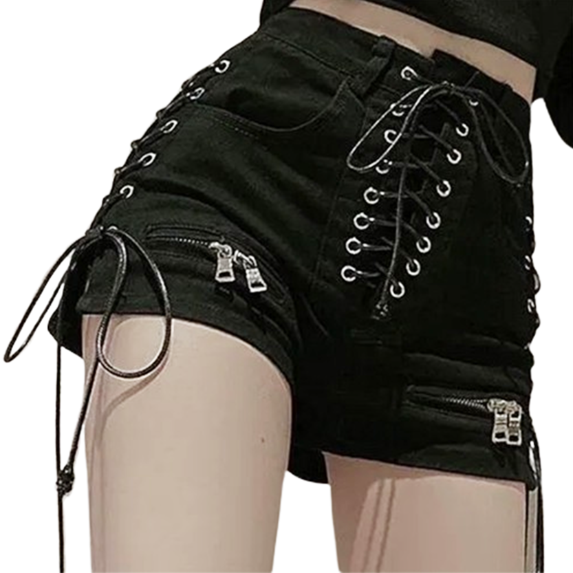 Want to stand out from the crowd this summer? Then check out our funky new gothic punk lace up and zip up shorts.