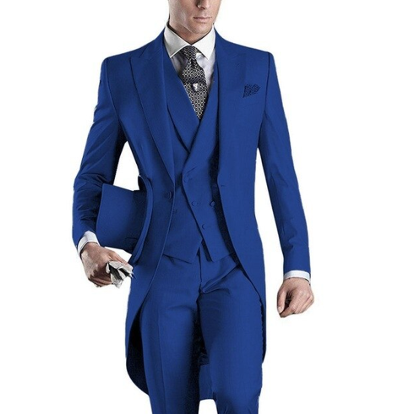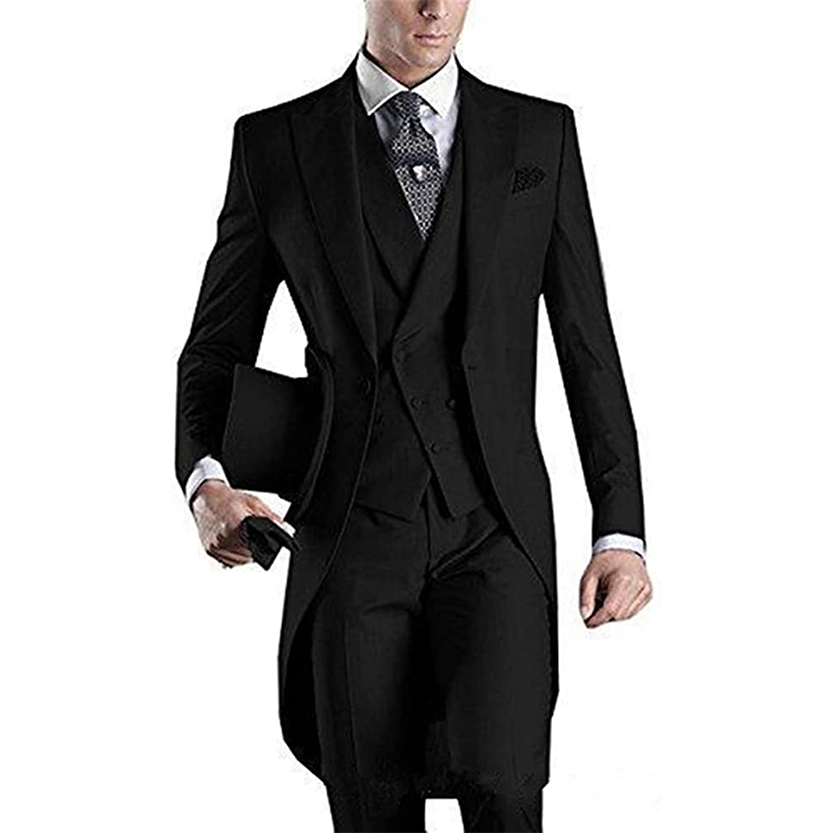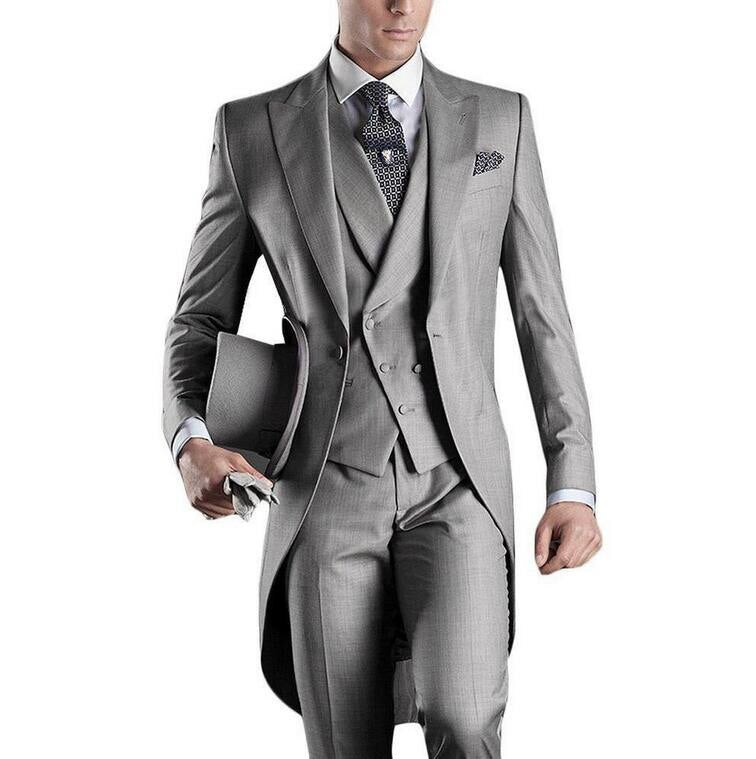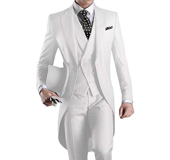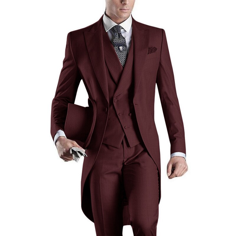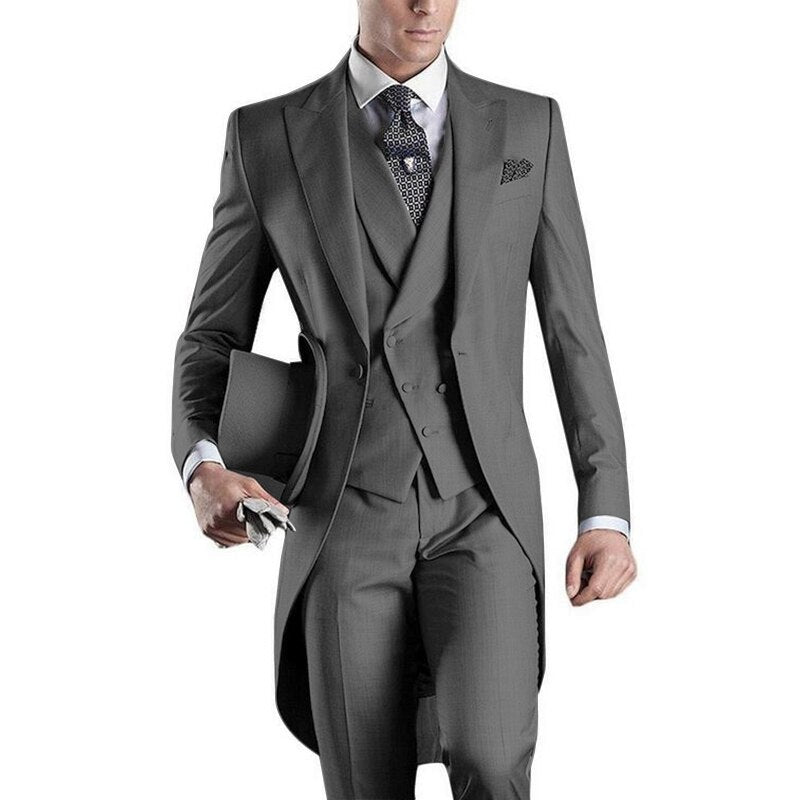 Looking for a stylish formal suit for special occasions? Our custom 3 piece grooms suit set just might be the solution. Complete with a classic tailcoat, adding a touch of timeless elegance to your formalwear this flattering form fitting suit set is sure to make a statement no matter the occasion.