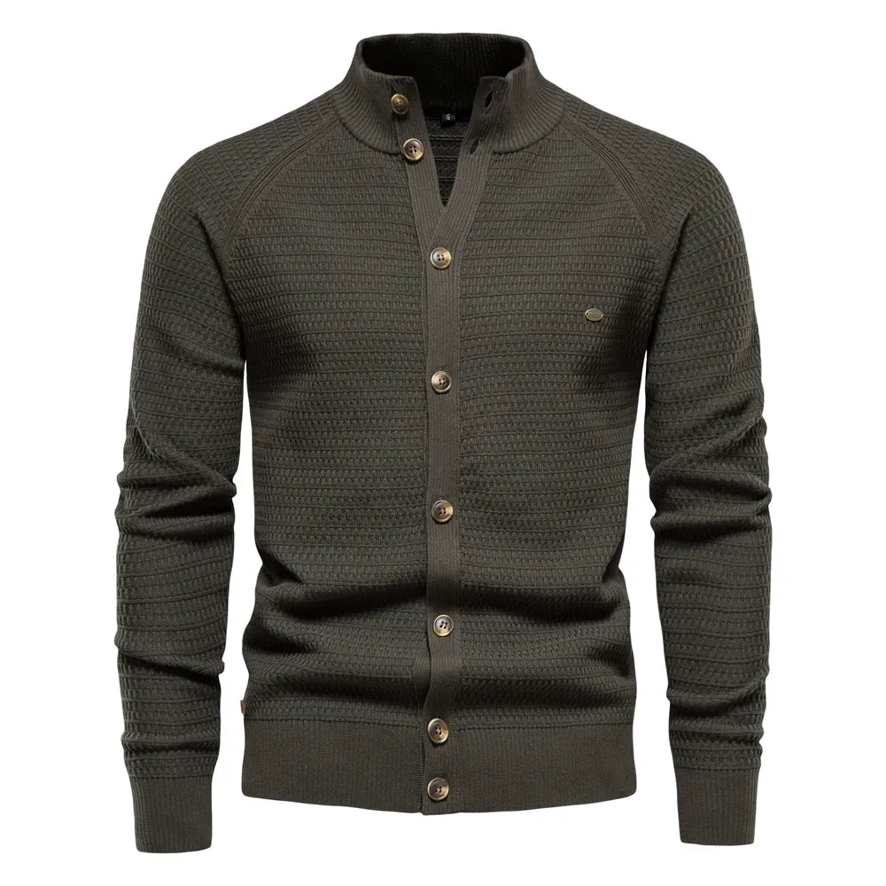 Introducing our Button Mock Neck Men's Lightweight Cardigan - the perfect blend of sophistication and playful style for the modern man! Elevate your wardrobe with this versatile and comfortable cardigan that effortlessly transitions from casual to business chic. Crafted with meticulous attention to detail, our Button Mock Neck Men's Cardigan isn't just a garment; it's a statement piece. The mock neck adds a touch of refinement, while the stylish buttons provide a playful twist, making it a wardrobe essential that stands out from the ordinary. Designed for both comfort and flair, this cardigan is the epitome of professional meets fun. The high-quality fabric ensures a cozy feel, while the button detailing showcases your keen sense of style. Whether you're heading to the office or a weekend brunch, this cardigan is your go-to choice for a polished look with a hint of personality.