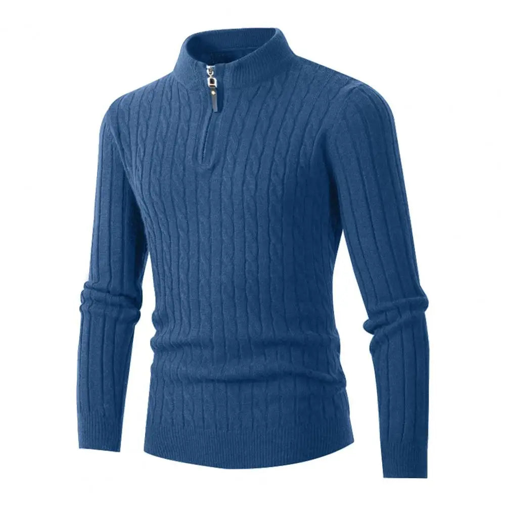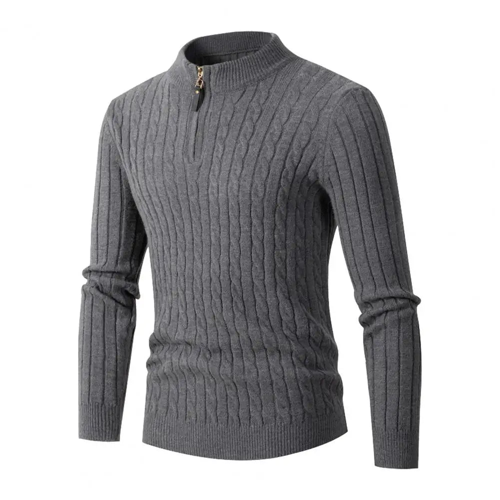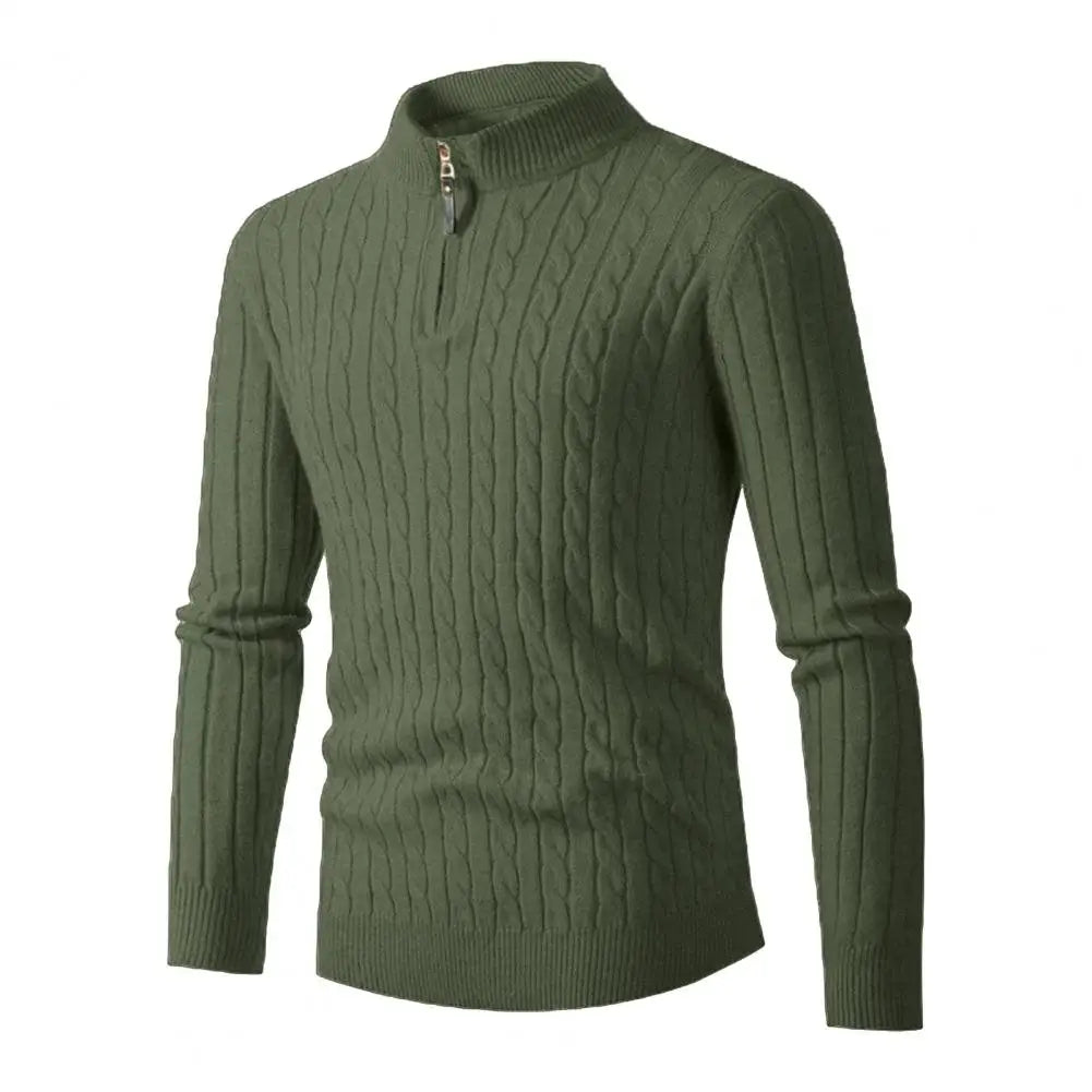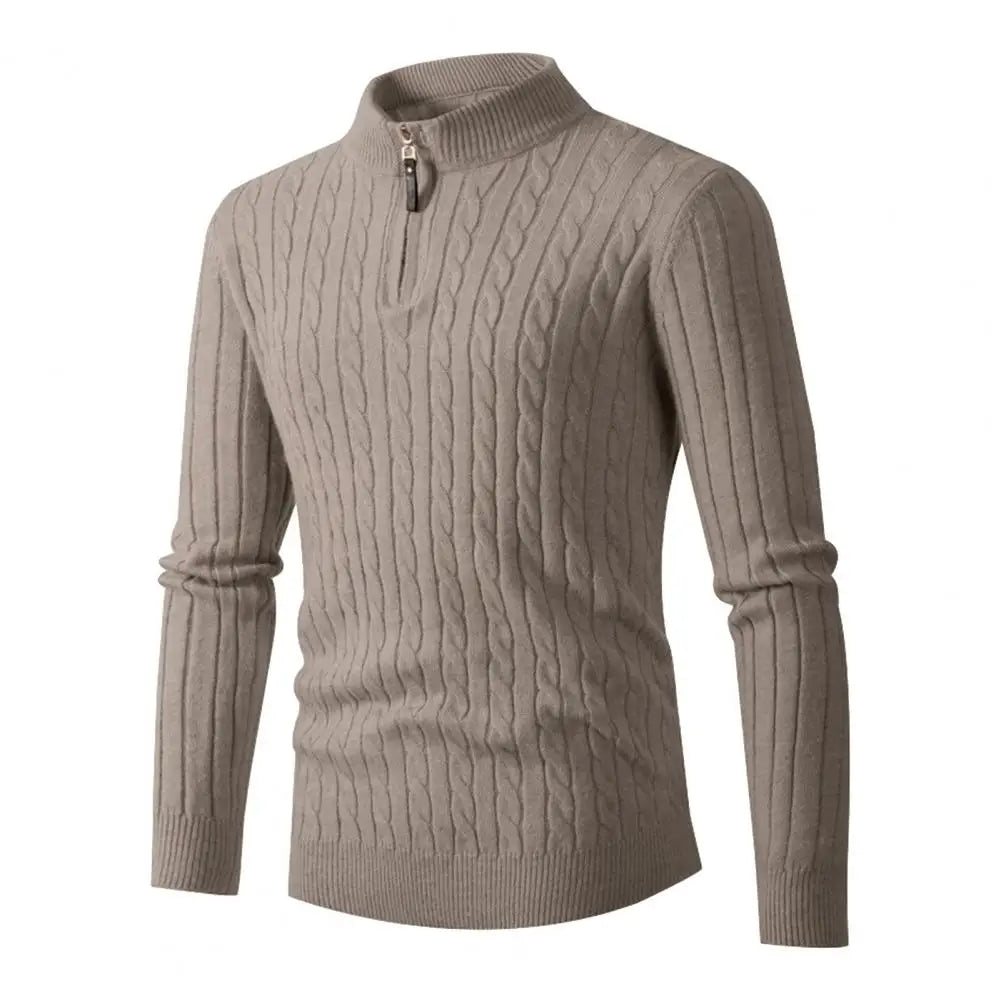 This men's winter sweater is crafted from thick, knitted fabric and boasts a half-high collar, twist texture, and slim fit for a stylish look. The convenient zipper, along with the elastic material, ensures warmth and comfort during colder months. With premium elastic soft fabric, this half zip sweater keeps you warm and comfortable during chilly days. This slim fit knitted pullover features a 1/4 zip, twisted pattern, and ribbed cuffs and hem, providing more definition than a plain pullover or turtleneck. Pair this mock neck sweater with jeans or chino pants as a top layer, or layer it under a jacket or overcoat for a more casual look. Not only is this flexible layering piece practical, but it also adds a stylish touch to any outfit. This classic zip up sweater is a must-have in your wardrobe and suitable for fall, winter, and spring. Ideal for daily wear, lunches, business meetings, dates, holidays, parties, and more.