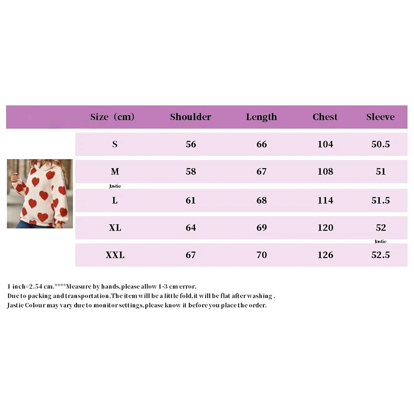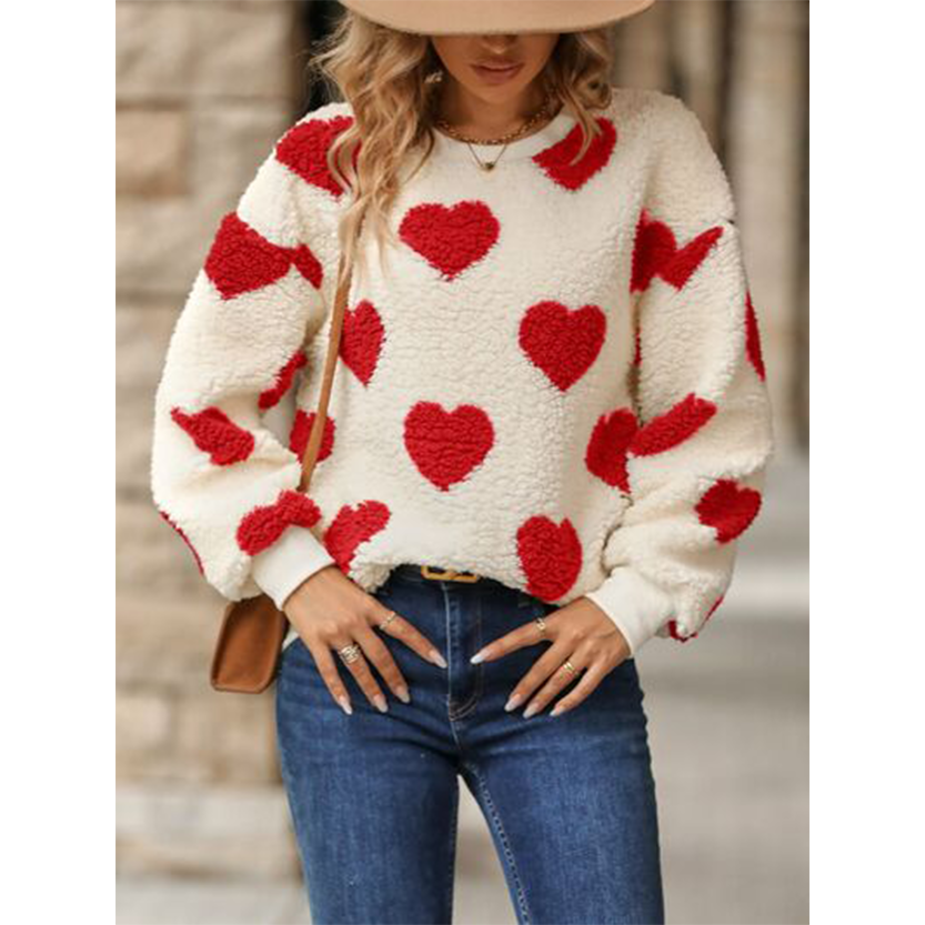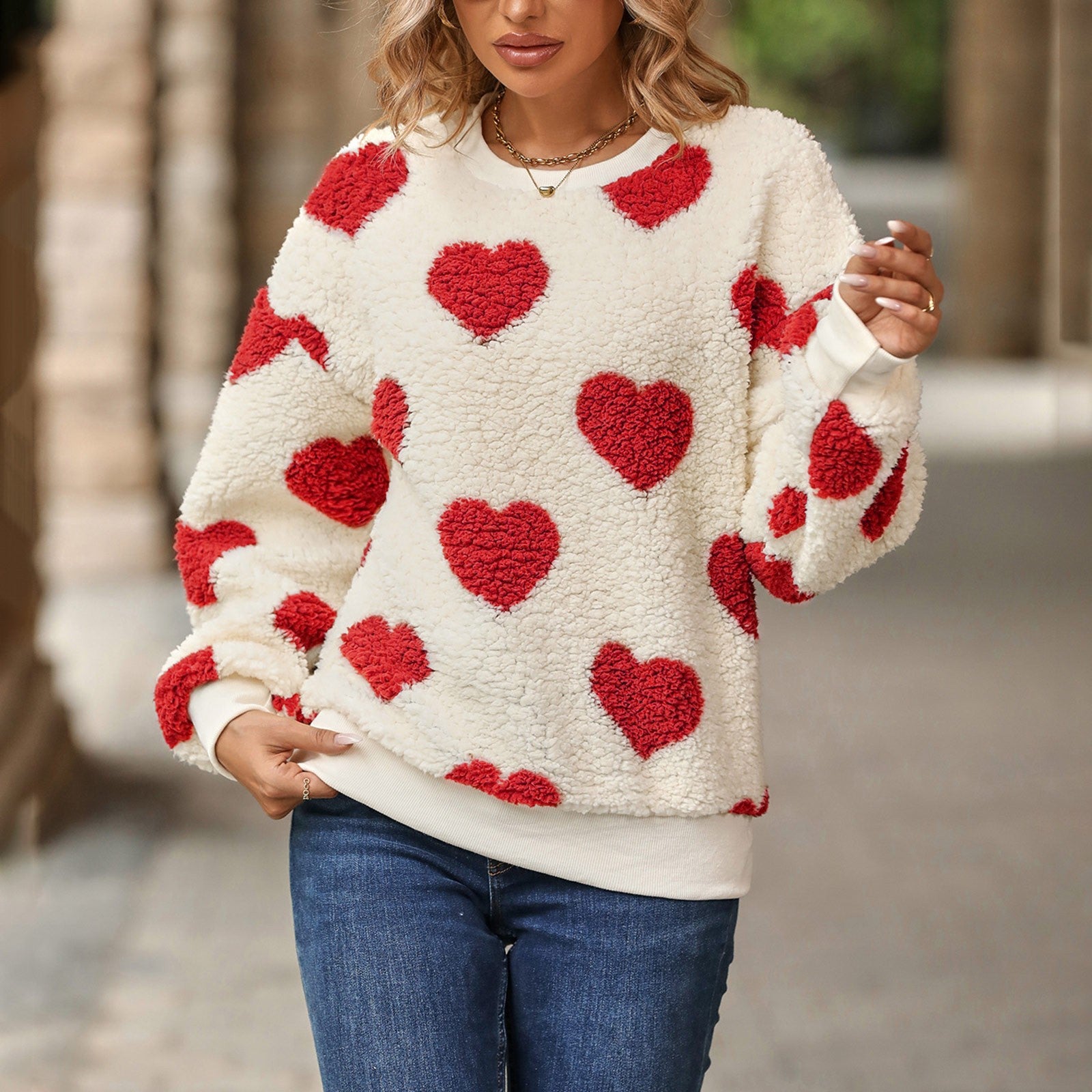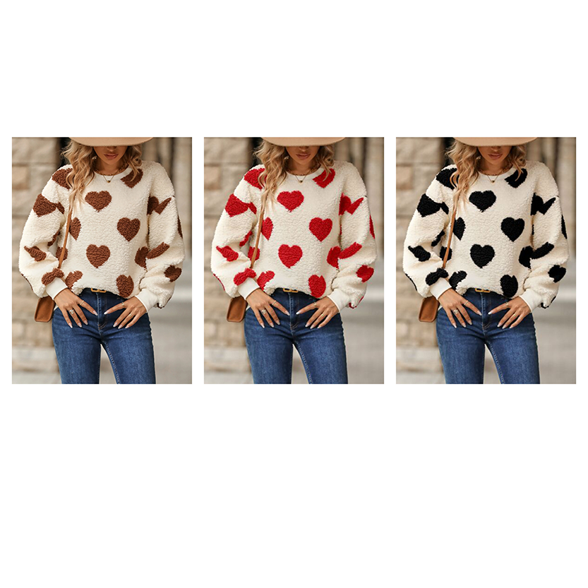 Experience comfort and style this winter season with our soft and cozy heart-shaped fleece sweater. Made from durable polyester fleece, our sweatshirt features a cute heart design that will keep you warm and fashionable all winter long. Whether you're running errands or heading out for a night out, our versatile pullovers are the perfect addition to your wardrobe. Plus, they make great gifts for loved ones. Don't miss out on this must-have piece! Add a hat, boots, and scarf for a chic look or keep it casual with your favorite jeans, pants, or skirt. Make a statement with these fun and functional pullovers - your new winter essential.