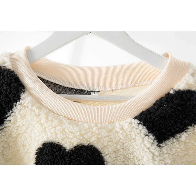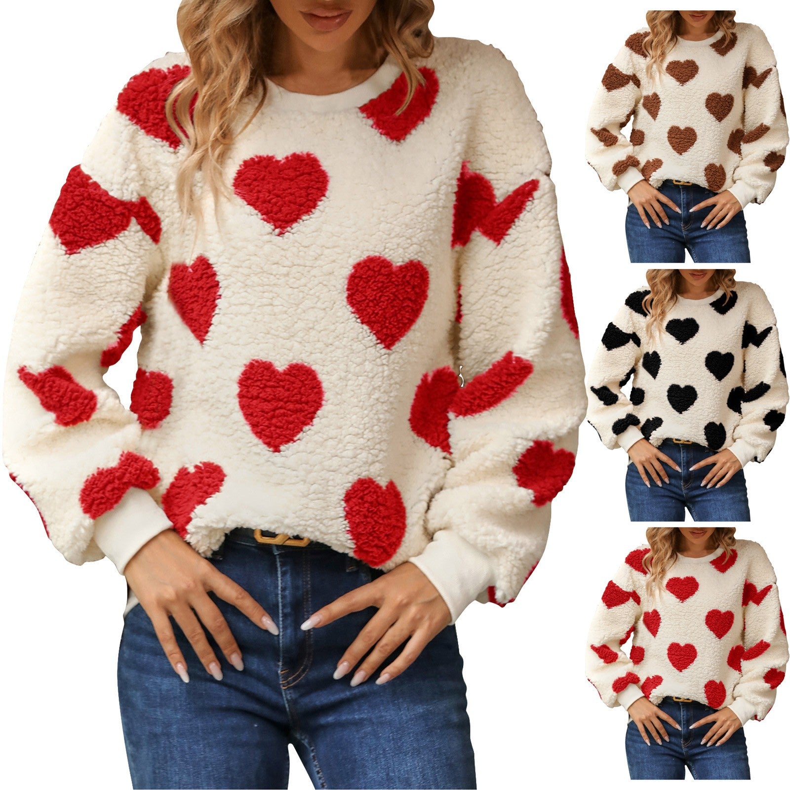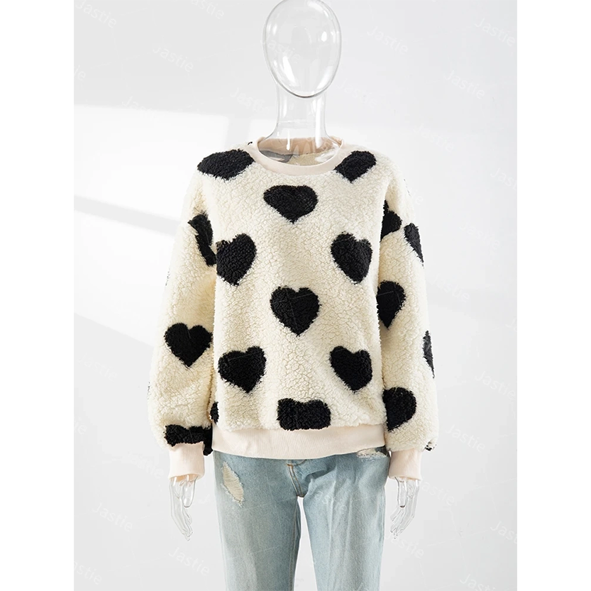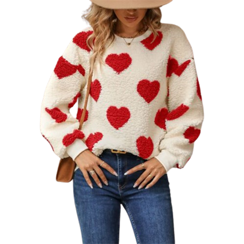 Experience comfort and style this winter season with our soft and cozy heart-shaped fleece sweater. Made from durable polyester fleece, our sweatshirt features a cute heart design that will keep you warm and fashionable all winter long. Whether you're running errands or heading out for a night out, our versatile pullovers are the perfect addition to your wardrobe. Plus, they make great gifts for loved ones. Don't miss out on this must-have piece! Add a hat, boots, and scarf for a chic look or keep it casual with your favorite jeans, pants, or skirt. Make a statement with these fun and functional pullovers - your new winter essential.
