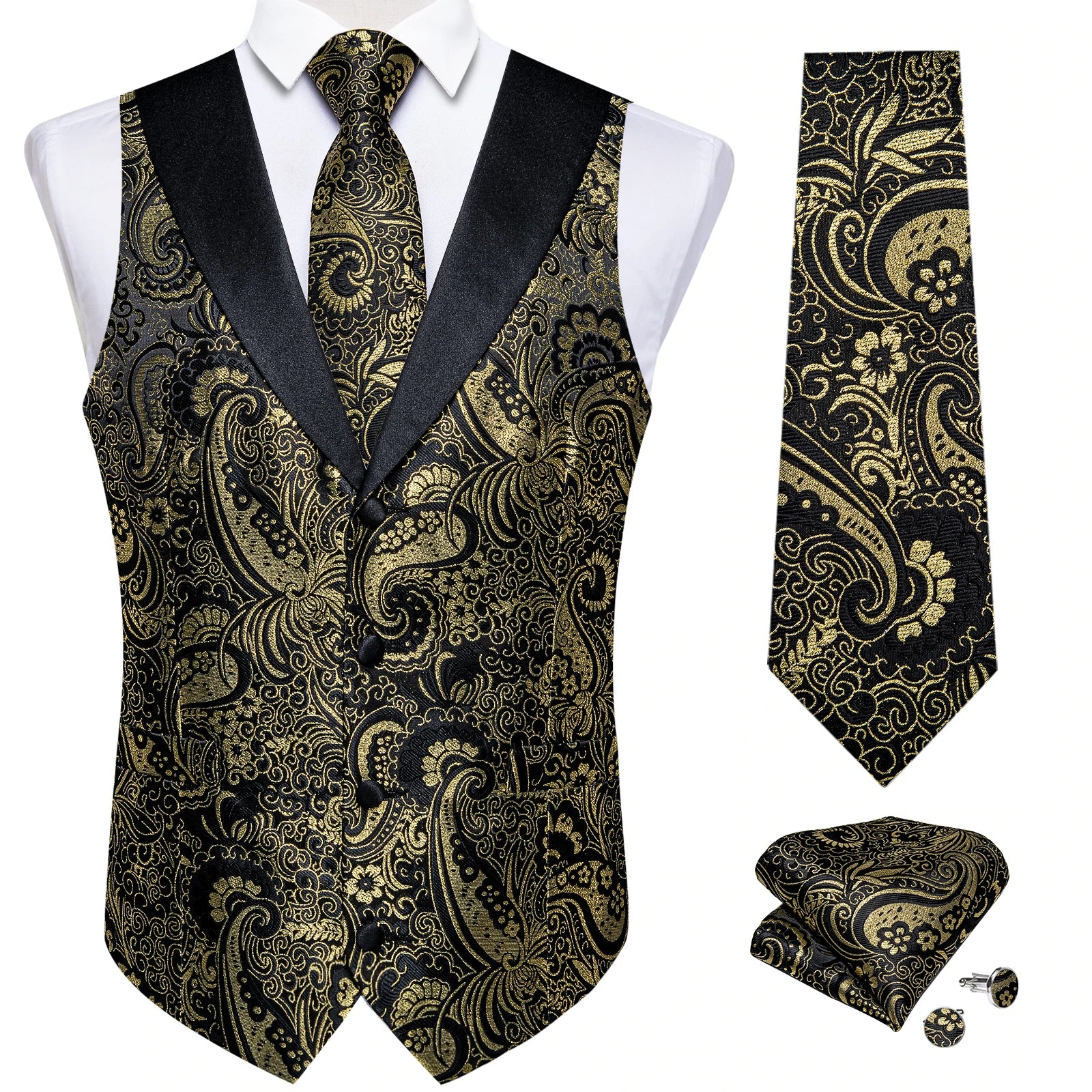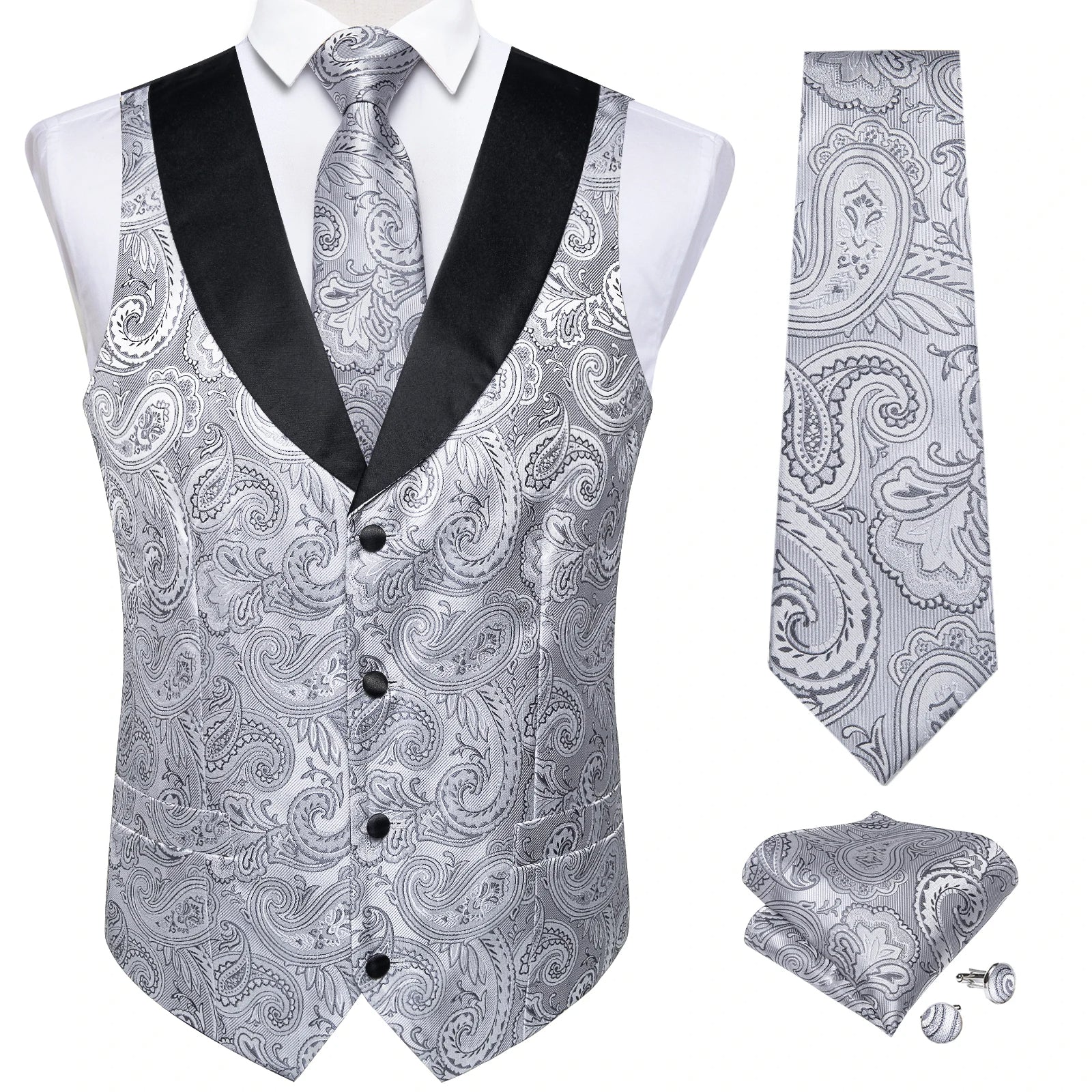 - Elevate your style and add a subtle touch of sophistication to your outfit by layering your vest over a formal dress shirt and pairing with dress pants, jacket and shoes. This 5 piece set includes, waistcoat, tie, pocket square and cufflinks to match making our outfit zing!