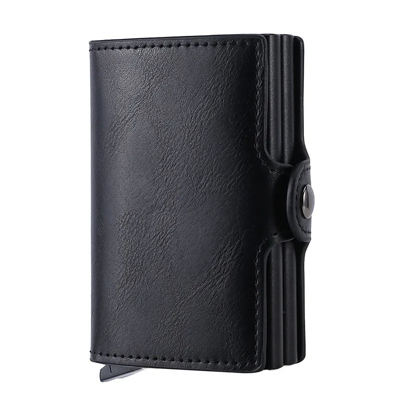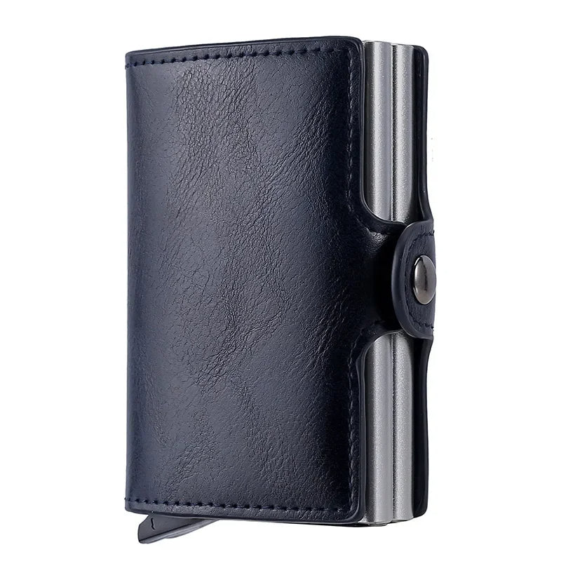- ELEGANT DESIGN - The stylish thin design makes these wallets look more elegant and retro. It includes a metal case with an eject button, a single box for about 8 cards, and 2 additional pockets for other cards (driver's license, insurance card, etc.). And a compartment that holds a small amount of cash or a bill. This small wallet can make your life easier as it holds everything you need for your busy day.